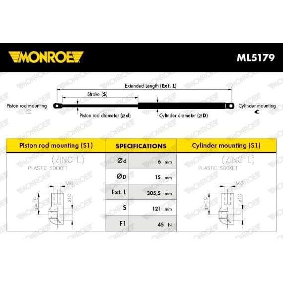Αμορτισέρ Μπαγκάζ Monroe ML5179για Opel Vectra B (36_) 10.95 – 4.02